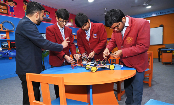 • The Atal Tinkering Lab in our school is dedicated to nurturing innovation and creativity through project-based learning among students from classes VI to XII.